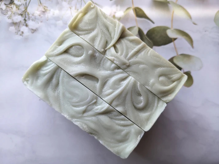 Ingredients: Olive Oil, Distilled Water, Shea Butter, Coconut Oil, Sodium Hydroxide, Cocoa Butter, Rice Bran Oil, Castor Oil, Fragrance, Cosmetic Minerals, Rosemary Oleoresin Extract
